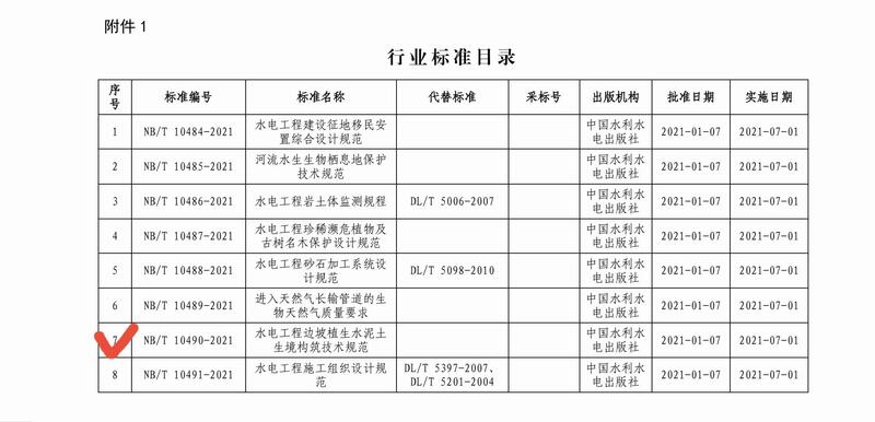 2021年1月7日,國家能源局正式頒布實施了2021年第一批能源行業標準。湖北潤智生態科技有限公司與三峽大學潤智生態科技研究院聯合主編的第二部能源行業標準《水電工程邊坡植生水泥土生境構筑技術規范》(NB/T 10490-2021)也獲得頒布。該標準由我公司通過總結二十年來水電工程水土保持與生態修復的經驗,集成一批專利技術,形成的技術規范。旨在規范水電工程邊坡植生水泥土生境構筑工程設計、施工與管理。本規范是針對60°以下邊坡的生態修復技術,采用濕噴施工工藝,大大降低施工成本,可有效實現邊坡防護和生態修復的有機結合。研究團隊主編的第一部《水電工程陡邊坡植被混凝土生態修復技術規范》(NB/T 35082-2016),主要針對45°以上高陡邊坡,采用干噴施工工藝,具有較好的抗沖刷水土保持功能。兩部技術規范的頒布實施,形成了一套完整的三峽大學邊坡生態防護技術體系,可較好地解決工程擾動區所有邊坡防護和生態恢復問題。